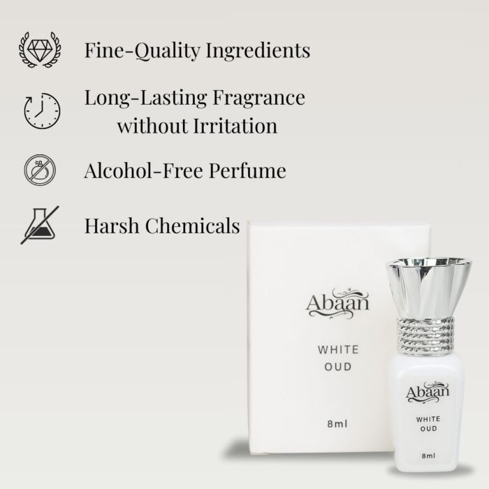 ✨ White Oud (8ml): A rich, oriental oud fragrance with woody and musky notes, designed for a luxurious and long-lasting impression.